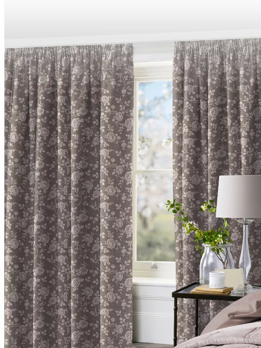 10 цен на Штора кухонная Василиса 145х260 см, Рогожка, 100% хлопок, Тесьма, Розы на льне