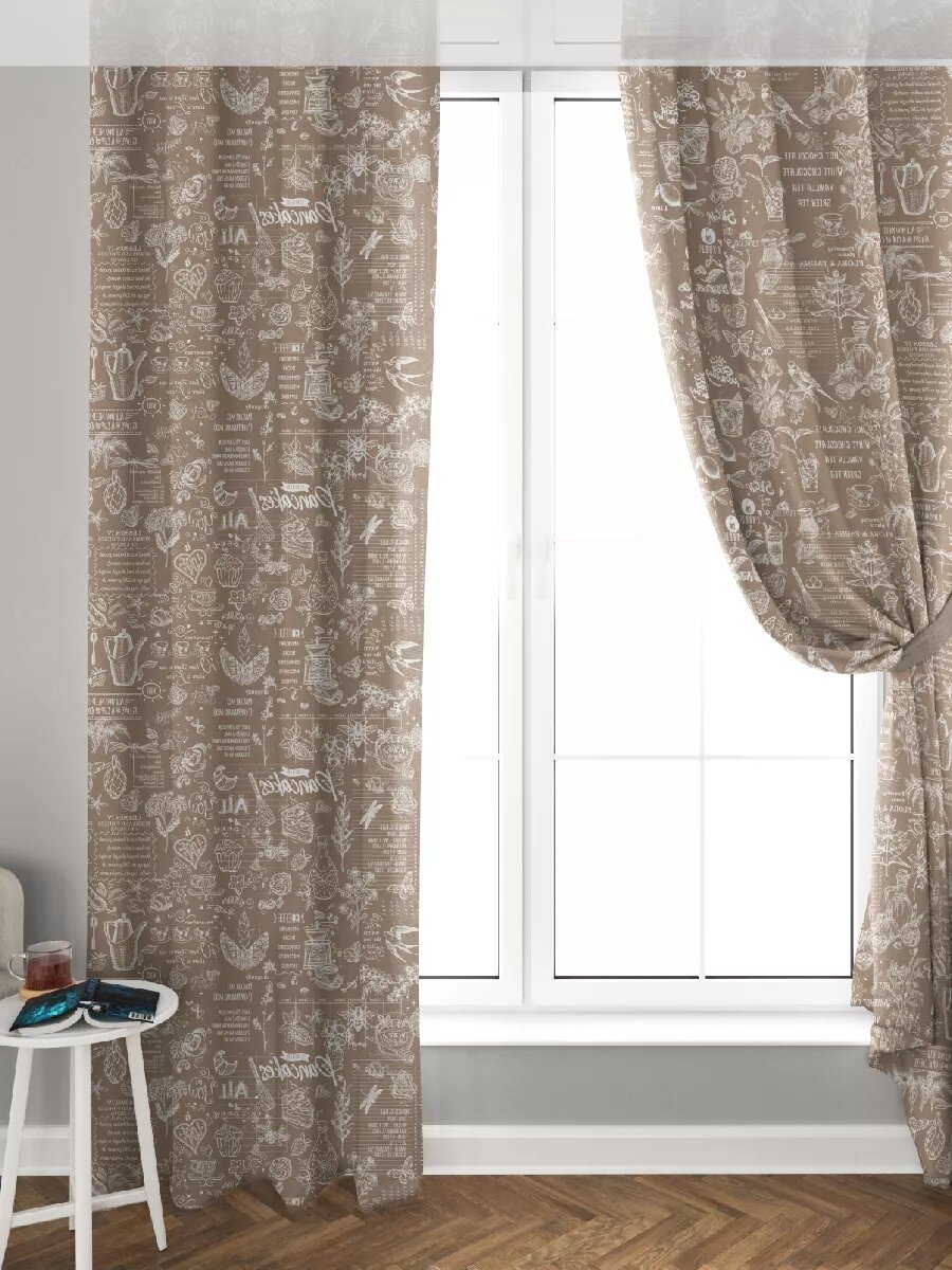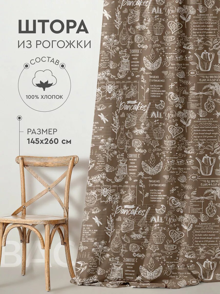 Штора кухонная 145х260 см, Рогожка, 100% хлопок, Тесьма, Кафе 989 ₽