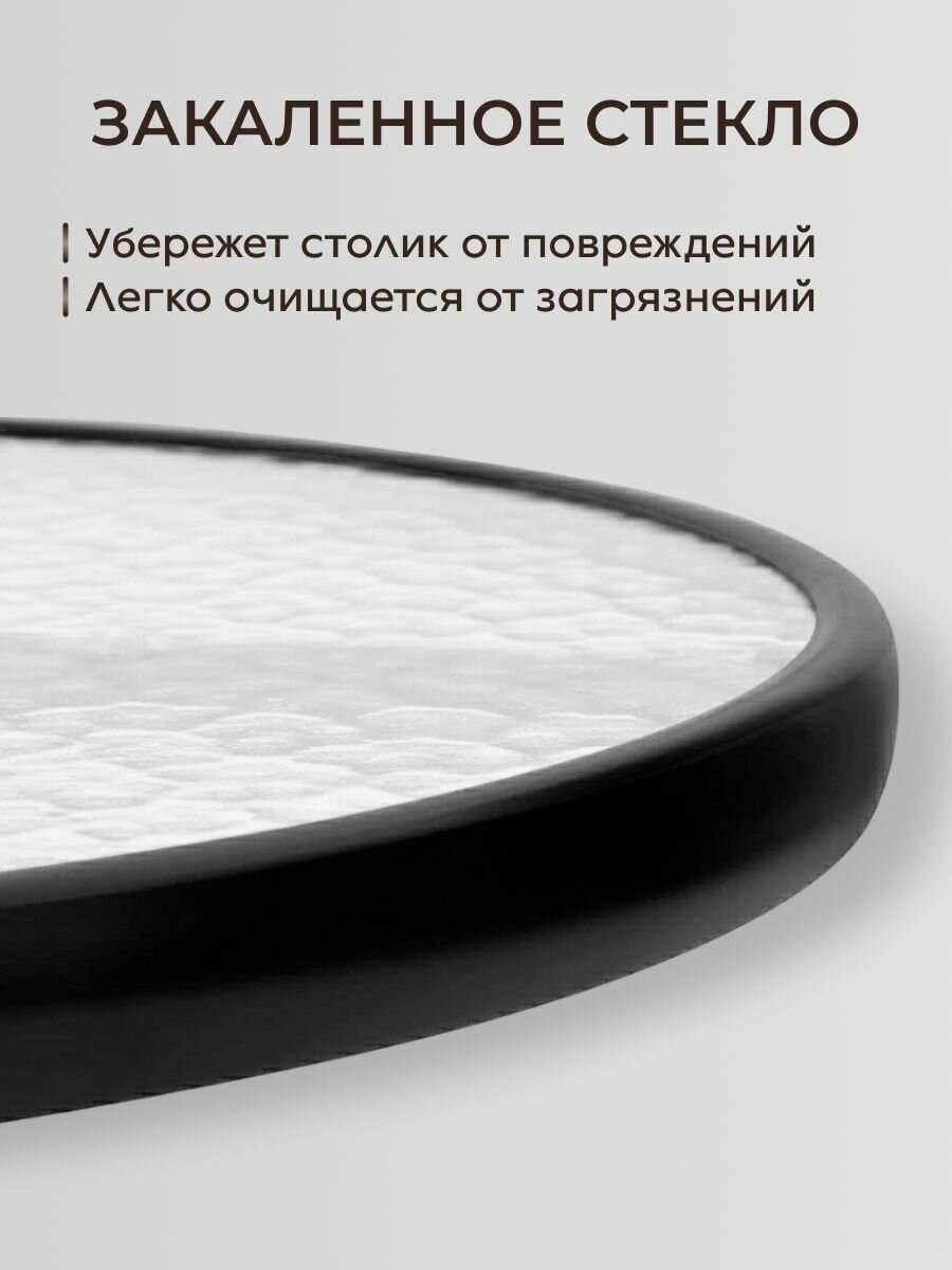 Стол кухонный и журнальный стеклянный обеденный Classmark 60х70 см кофейный или садовый круглый, закаленное стекло, сталь, для дома и дачи, черный информация: