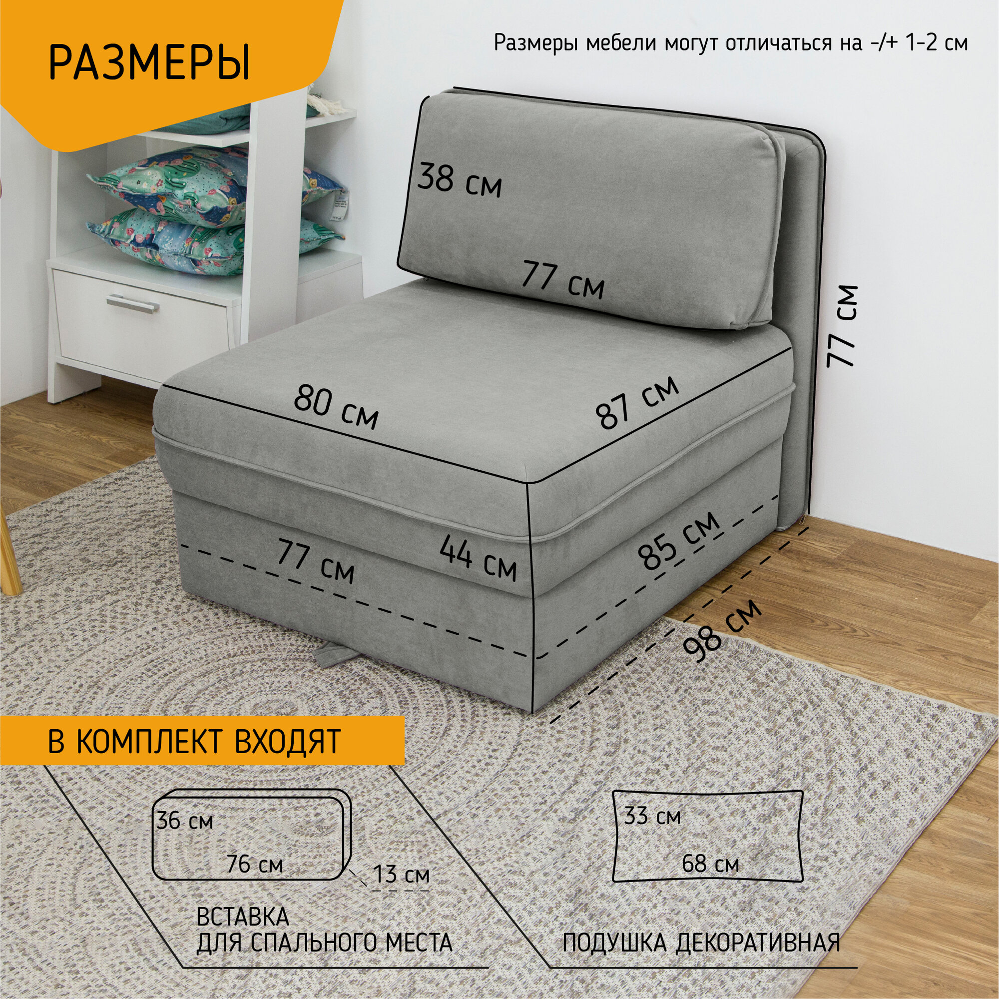 Диван-кровать KRASDIVAN Олаф 80х100 см, с ящиком для белья, велюр Бахрия 9 серый информация: