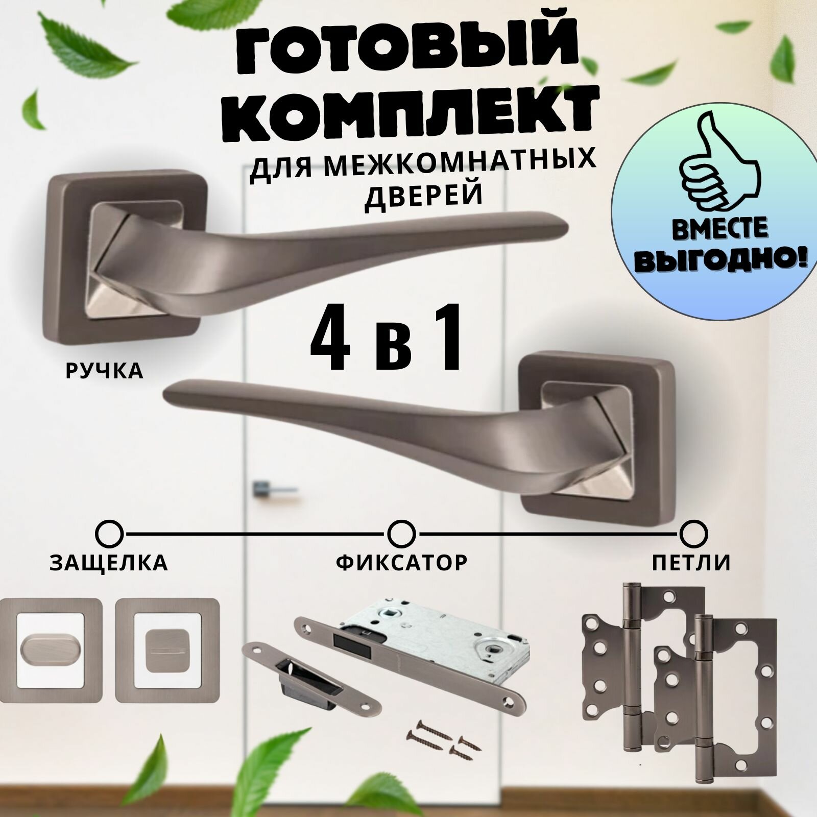 Ручка дверная межкомнатная, 4 в 1, Ручка дверная межкомнатная с защелкой, С петлями, С сантехнической заверткой информация: