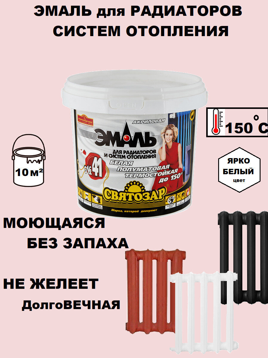 Святозар-41 (Эмаль для радиаторов и систем отопления. Термостойкая до +120°С.) ведро (1кг.), Слоновая кость 1 238 ₽