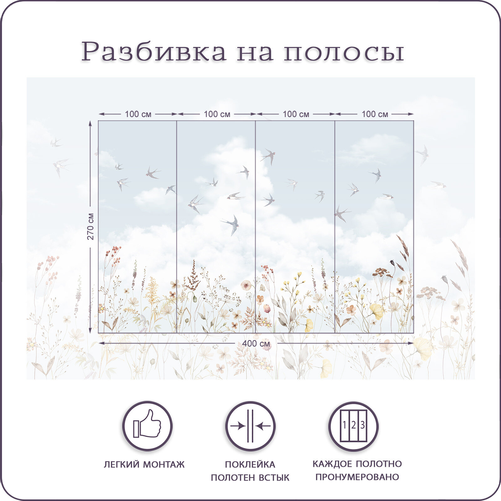 Фотообои на стену флизелиновые 3d Растения Цветы Небо Птицы 400х270 см Bartonwall N163 информация: