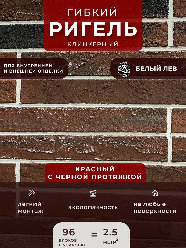10 цен на Гибкий клинкерный ригельный кирпич "Красный с черной протяжкой". Декоративный кирпич. Для внутренней и внешней отделки