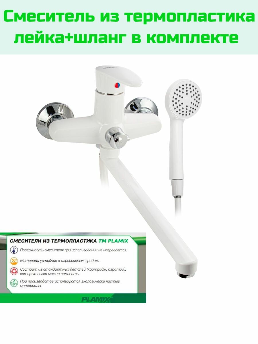 10 цен на Смеситель в ванную из высокопрочного термостойкого АБС пластика, Plamix CEZAR-006(EURO),лейка+шланг в комплекте
