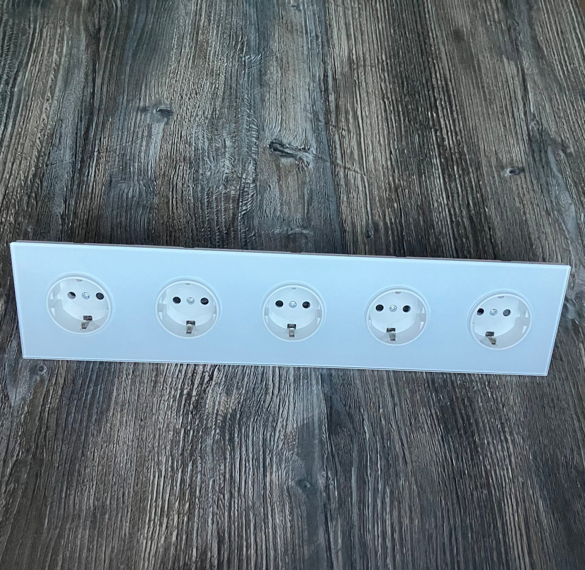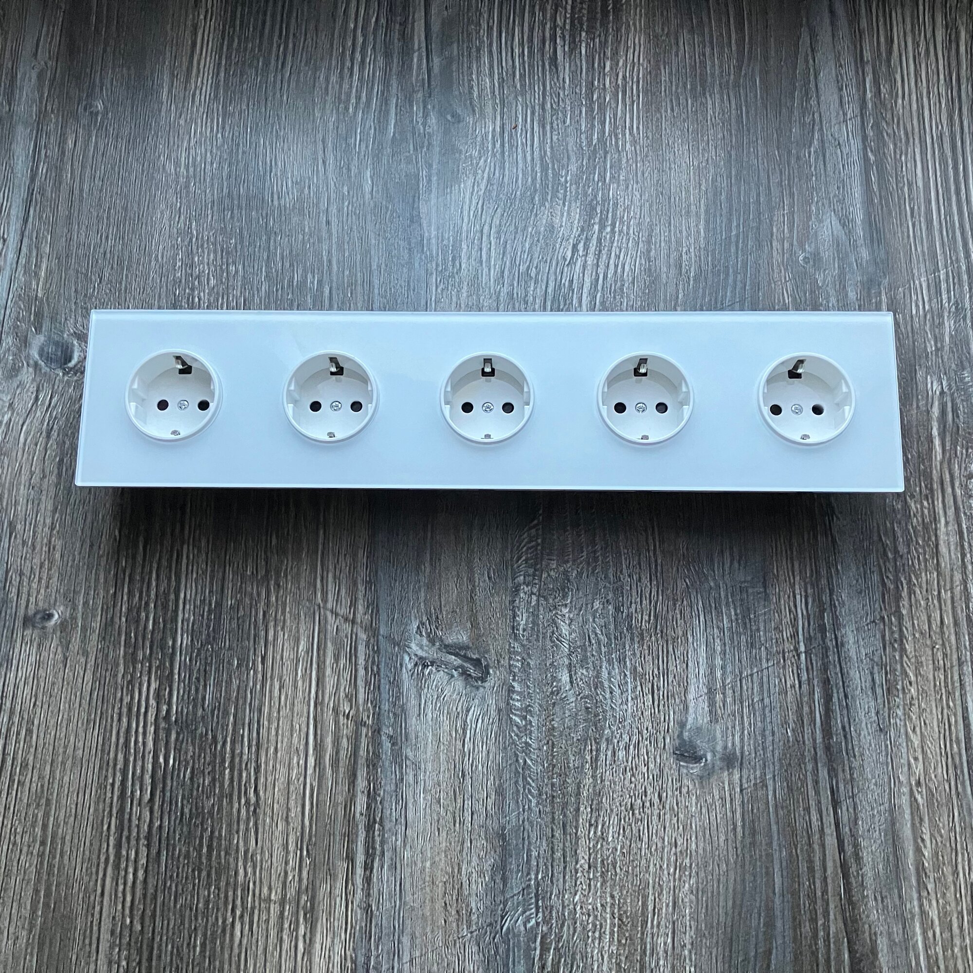 Отзывы на Розетка электрическая 5 постов 16А, рамка 366*82*35mm. рамка стекло сплошное, цвет белый. F8