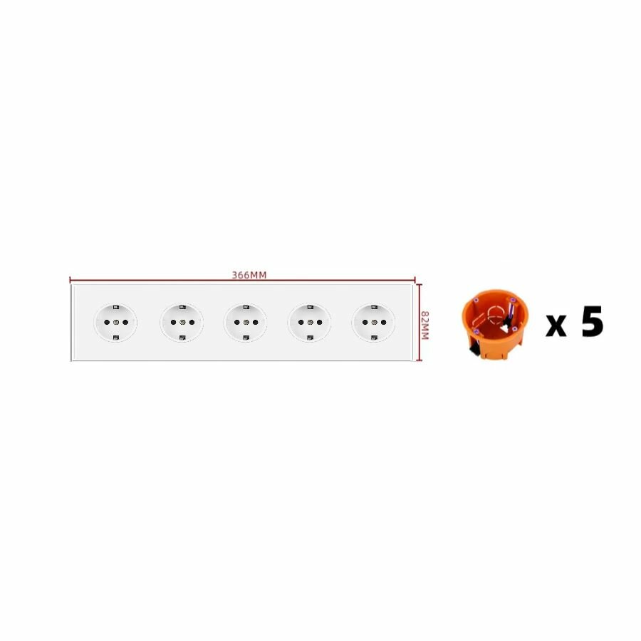 Розетка электрическая 5 постов 16А, рамка 366*82*35mm. рамка стекло сплошное, цвет белый. F8 информация: