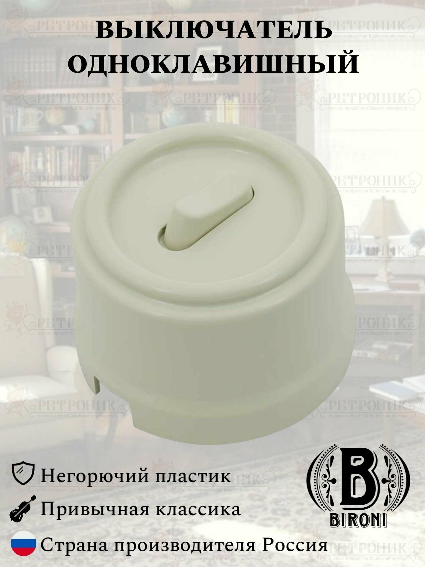 10 цен на Винтажный ретро выключатель 1 клавишный, пластик, (клавишный), слоновая кость, В1-220-211, Bironi