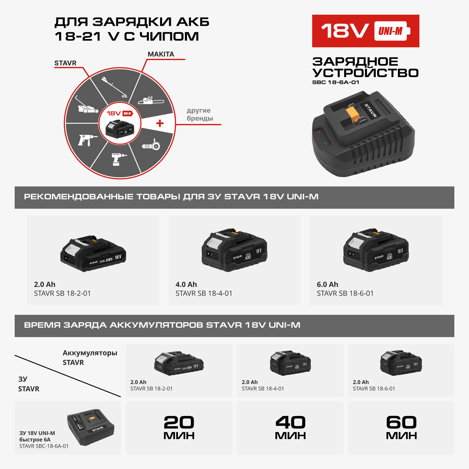 Зарядное устройство STAVR SBC 18-6A-01, 18V UNI-M, 6А информация: