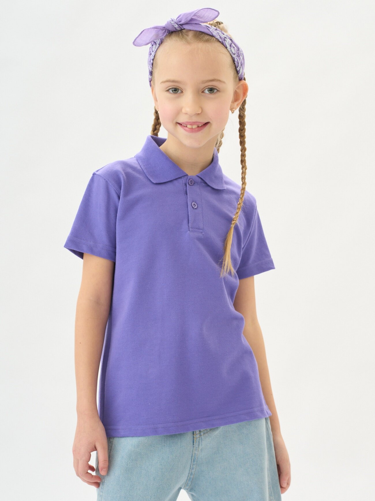 Футболка поло детское для мальчика/девочки короткий рукав школа/садик Uzcotton Лиловый134\9-10 930 ₽