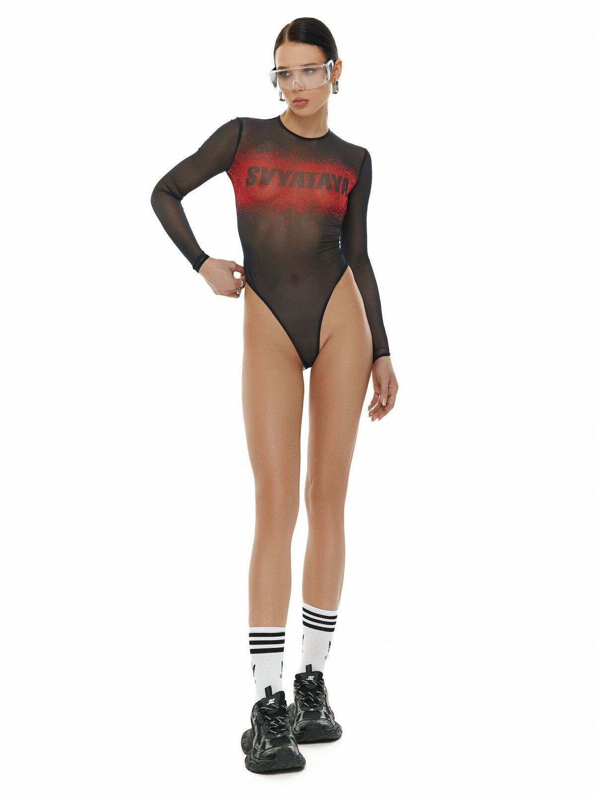 Женское боди из сетки с принтом святая, фуксия, размер XS 2 990 ₽