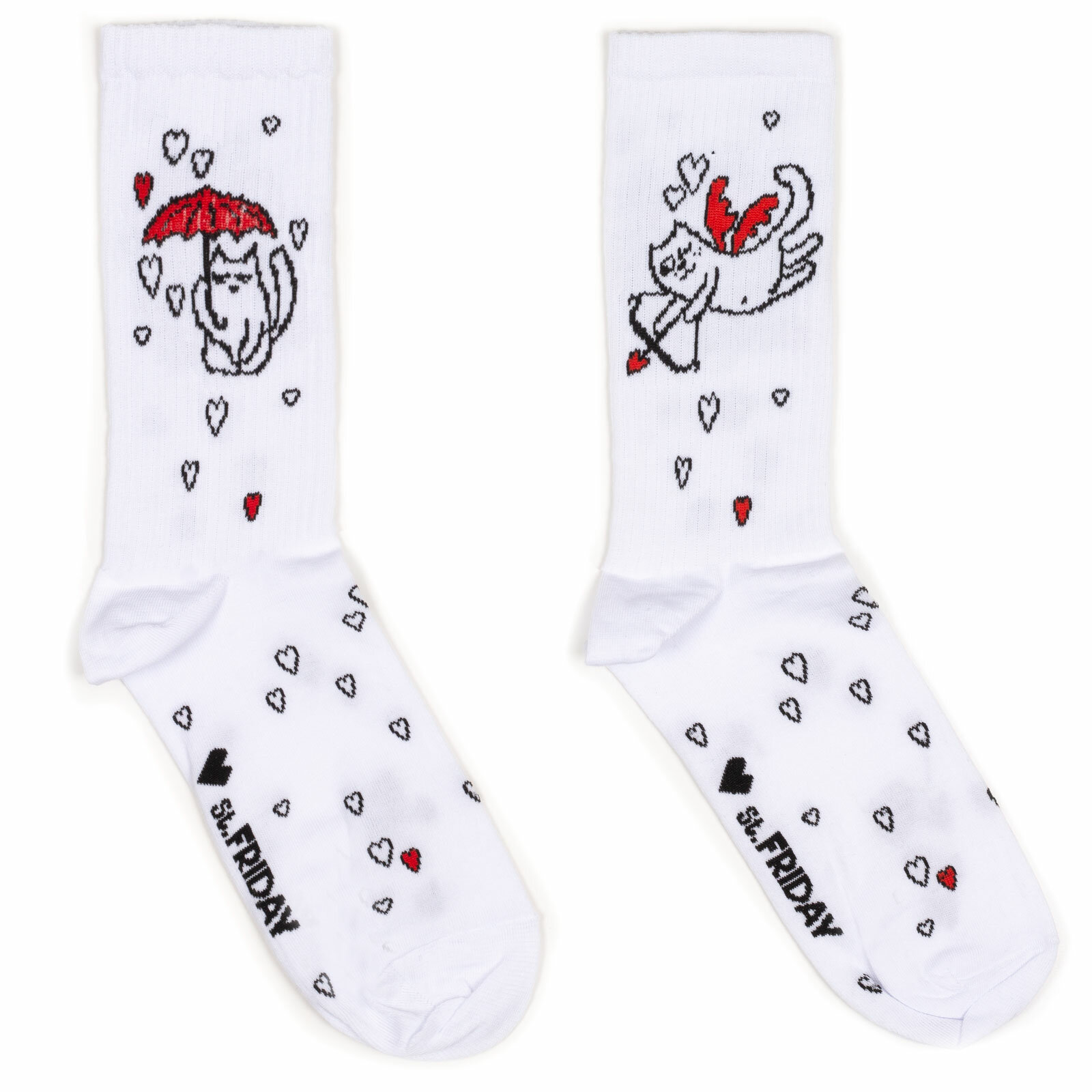 Носки St. Friday Унисекс Носки с надписями и рисунками- Купидон кот паттерн, размер 38-41, розовый, черный, белый, красный 590 ₽