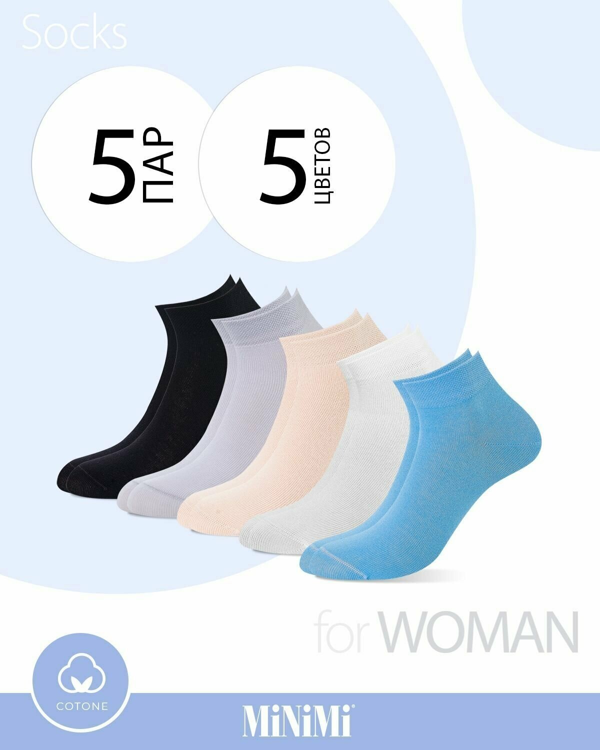 Носки женские MiNiMi Cotone 1201, летние, набор 5 пар, Цвет Bianco/Nero/Beige/Grigio/Blu Сhiaro, Размер 35/38