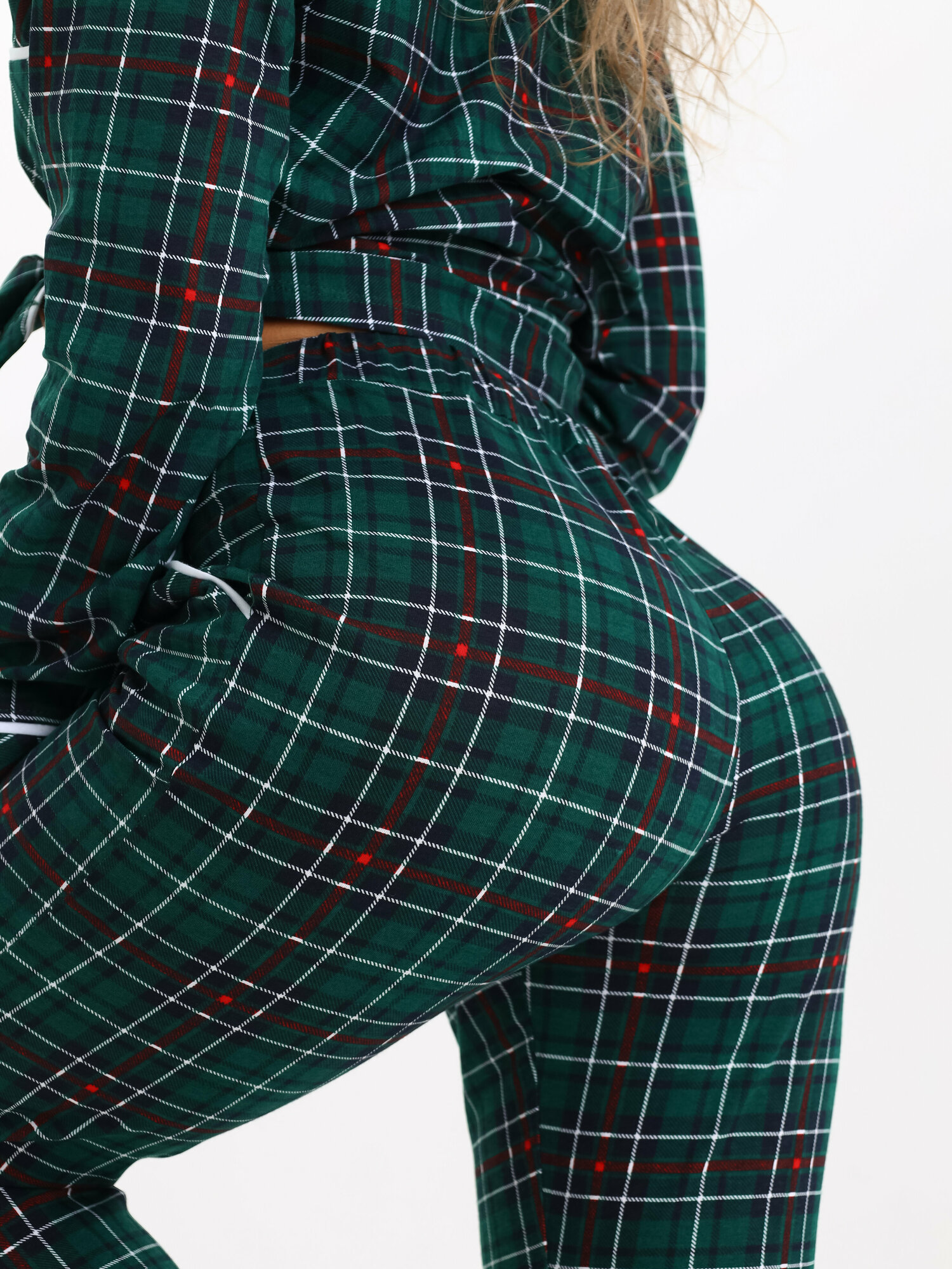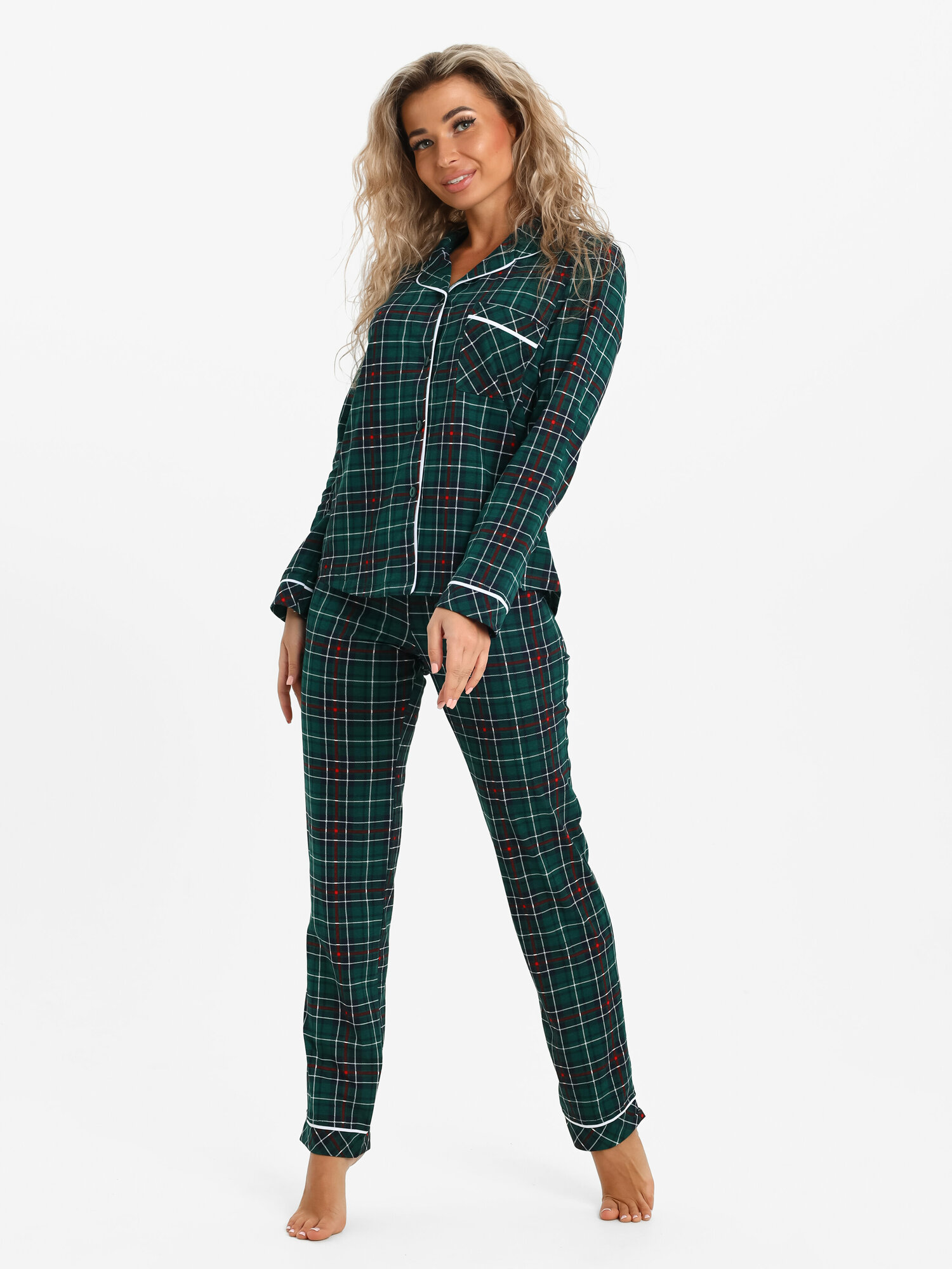 Пижама MODALINA 100% хлопок костюм домашний в клетку/новогодняя пижама зел46 информация: