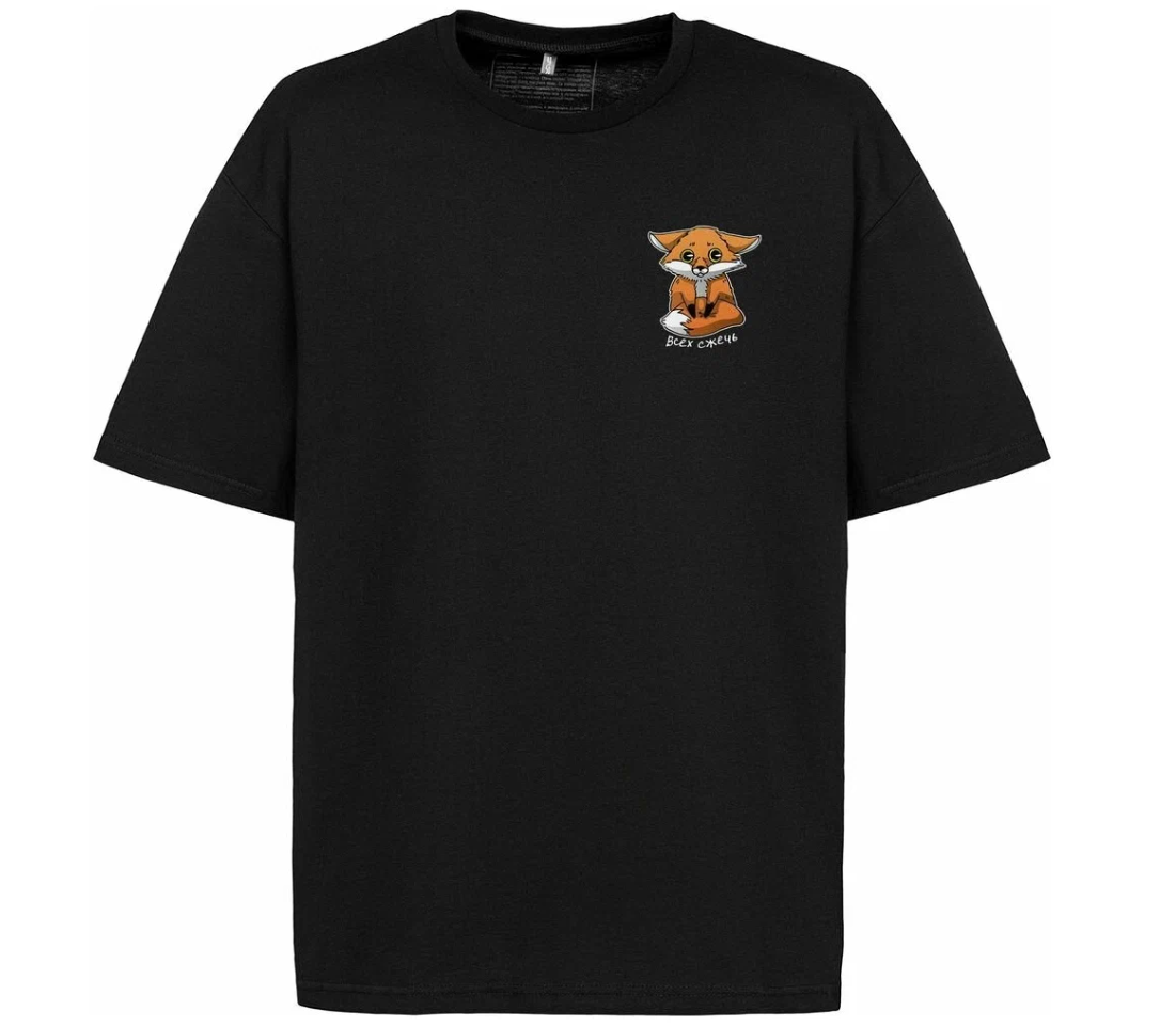 Отзывы на Футболка мужская женская унисекс с принтом хлопковая хлопок оверсайз Cute Fire Всех сжечь Лиса черная, размер XL/XXL