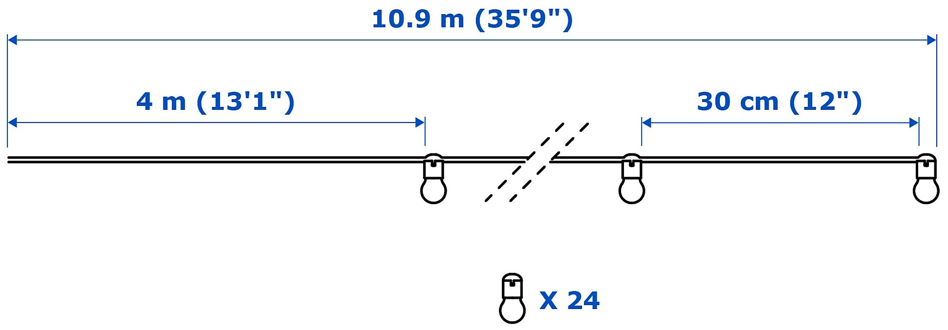 Гирлянда икеа блотсно 24 лампы, 10.9 метра информация: