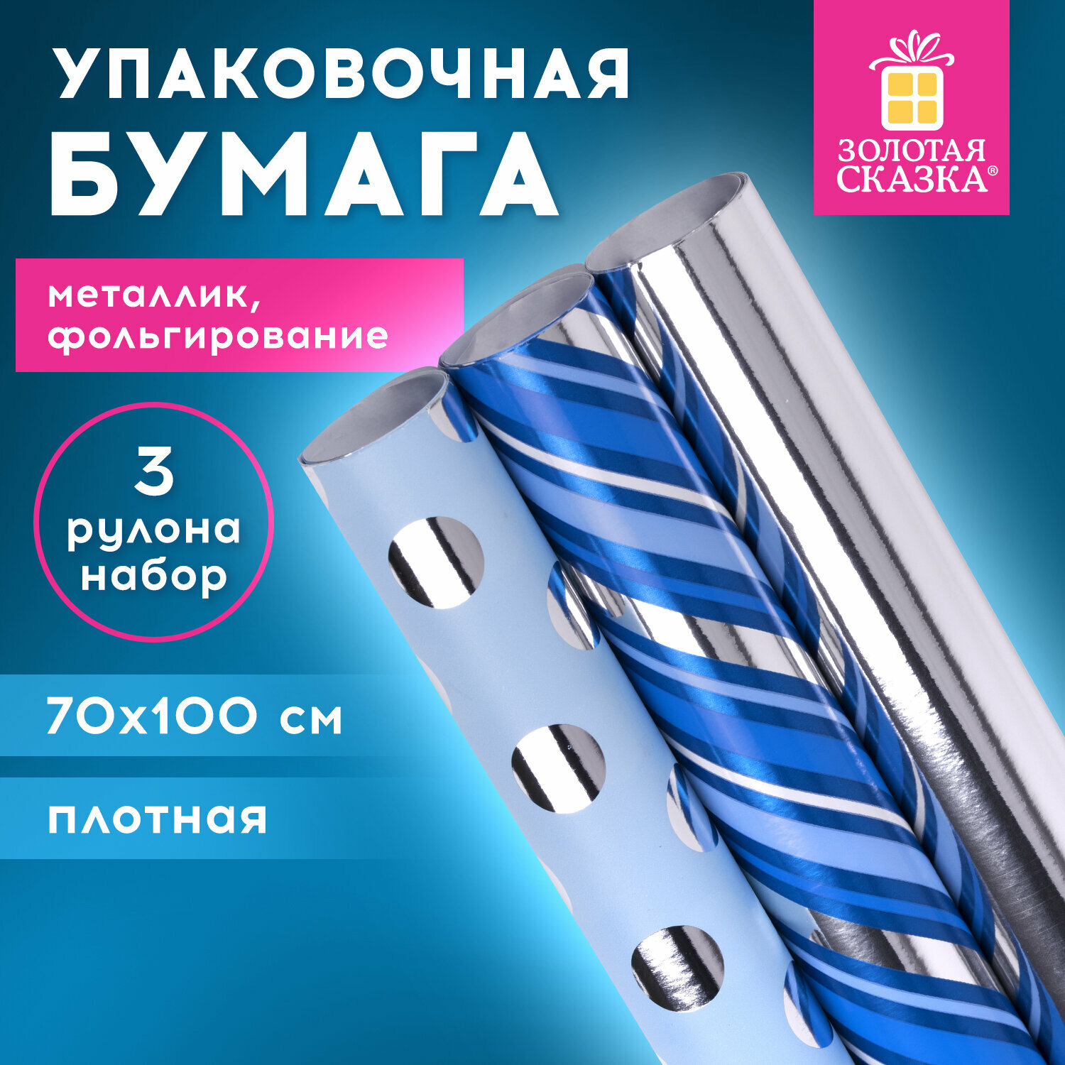 Бумага упаковочная новогодняя набор 3 шт., "Blue Collection", 70х100 см, 3 дизайна, золотая сказка, 592058 540 ₽