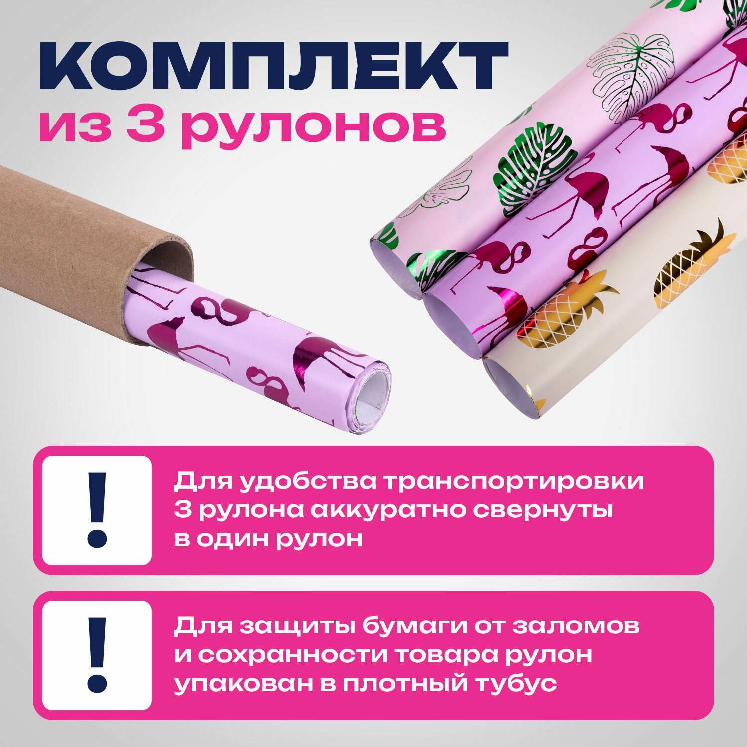 Отзывы на Упаковочная бумага для подарков крафтовая с эффектами в рулонах, набор 3 штуки, 70х100 см, Colorful Tropics, золотая сказка, 591945