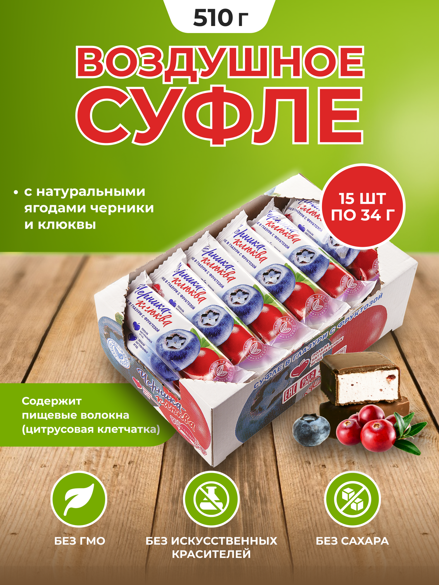 Черничное суфле с клюквой Голицин конфеты без добавления сахара в глазури на фруктозе батончики 15 шт. по 34 г полезные сладости информация: