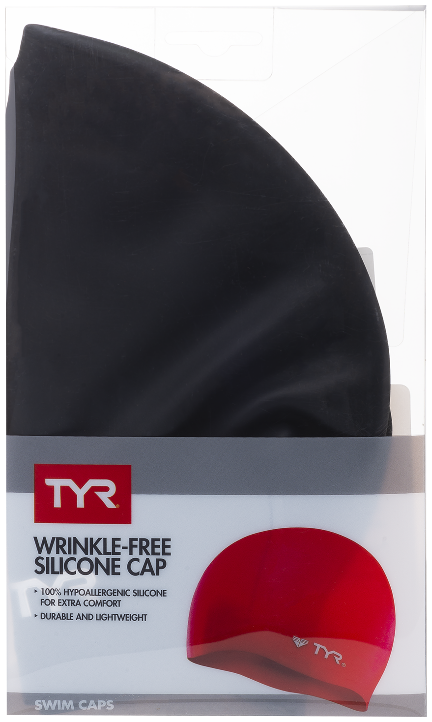 Шапочка для плавания TYR Wrinkle Free Silicone Cap (001 Черный, O/S)