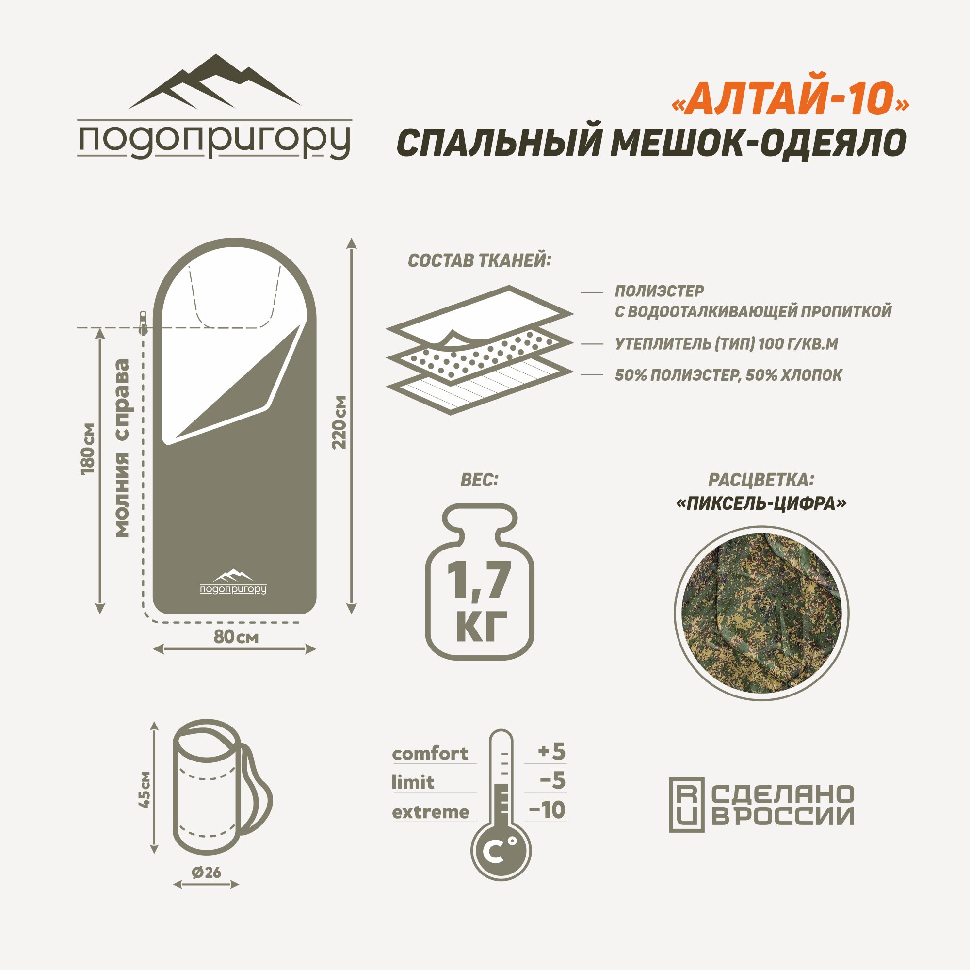 Спальный мешок туристический "Подопригору" -10°C, цвет Цифра-Пиксель, с подголовником информация: