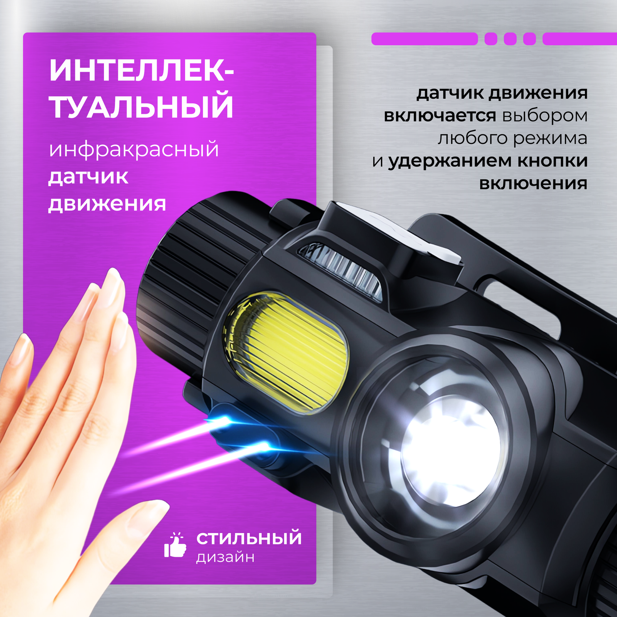 Фонарик налобный аккумуляторный сенсорный
