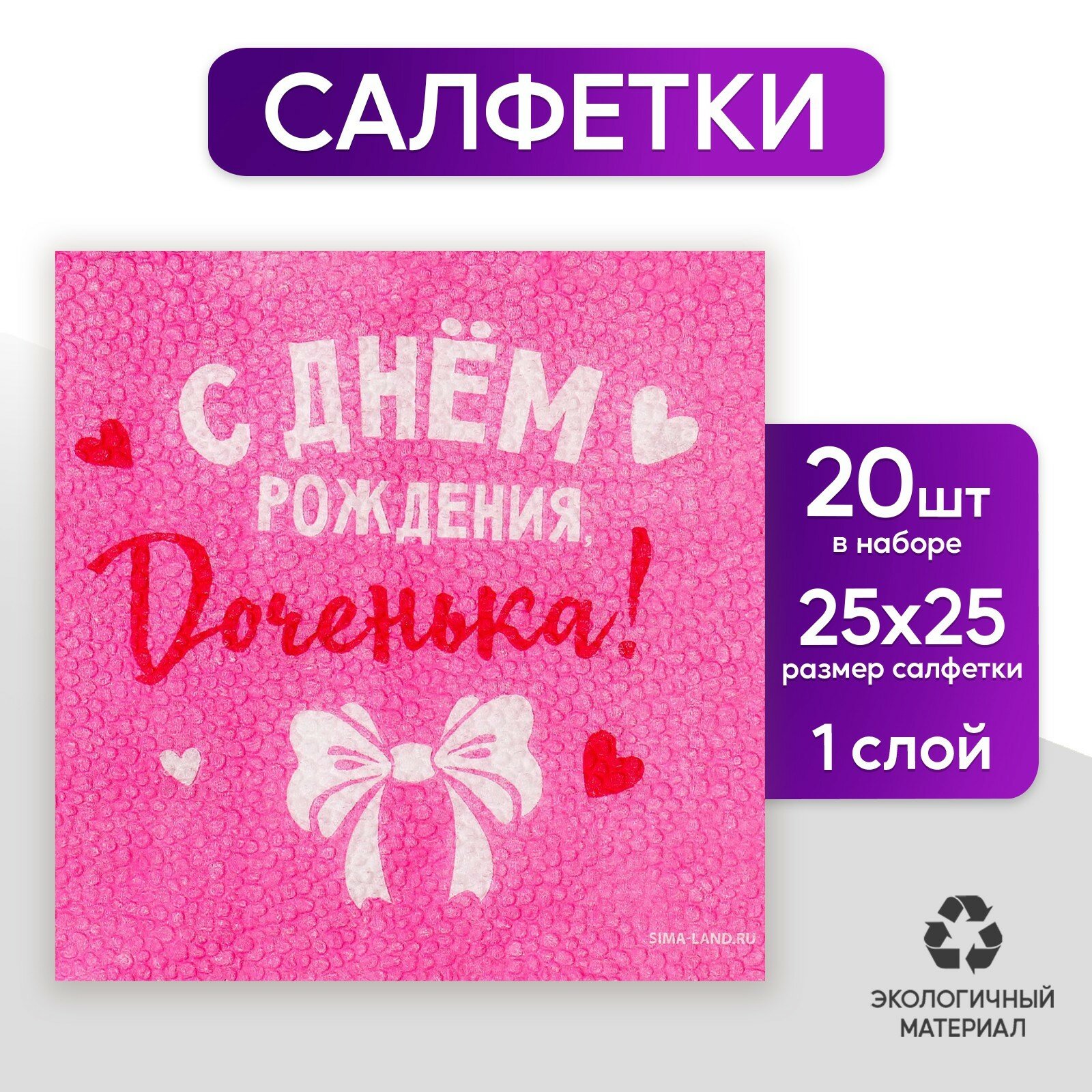 Салфетки бумажные «С Днём Рождения», доченька, 24х24 см, 20 шт 293 ₽
