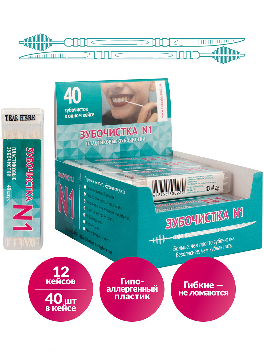 Зубочистка №1 / Зубочистки / Зубочистки пластиковые / Межзубные ёршики / 12 упаковок по 40 штук информация: