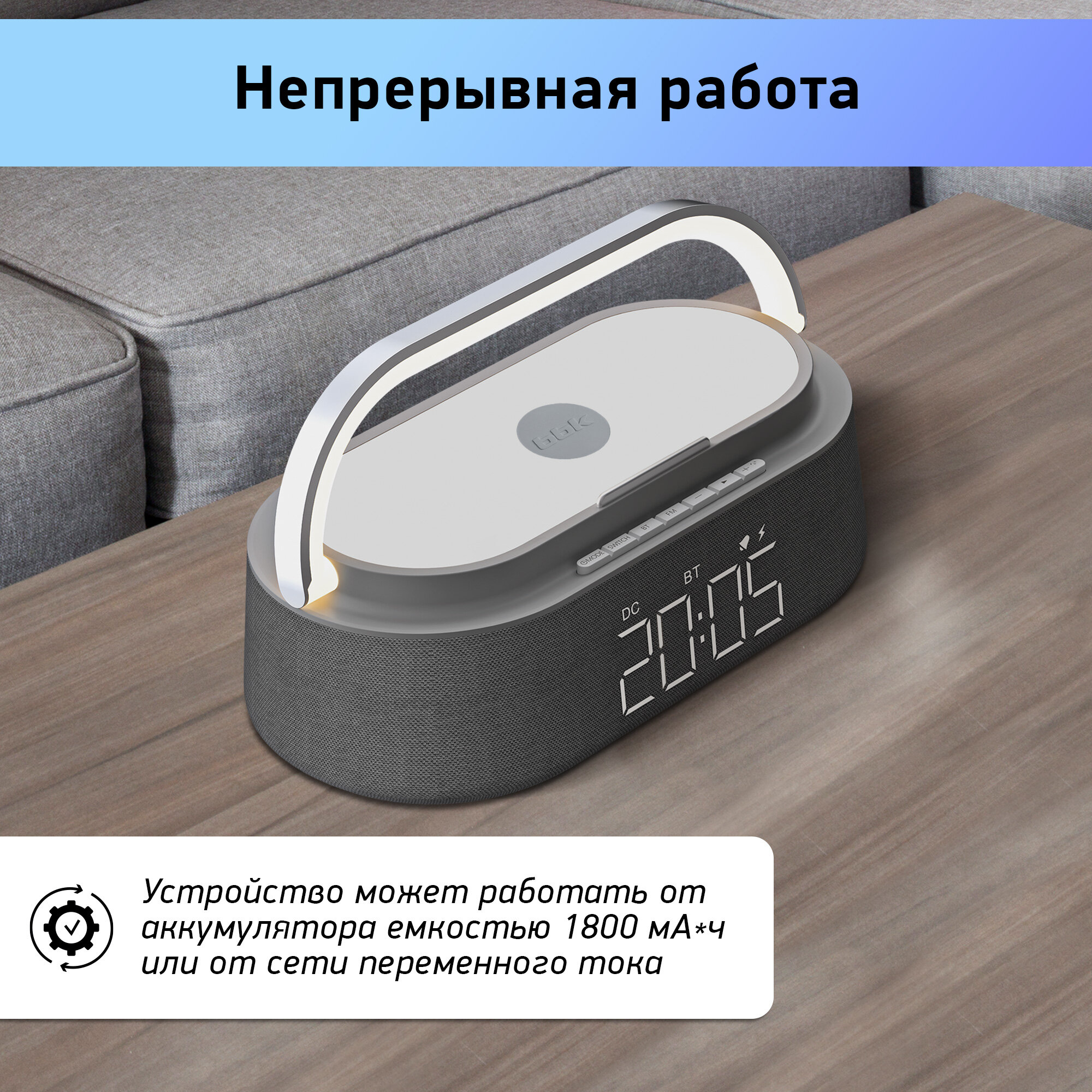 Портативная колонка ночник с беспроводной зарядкой BTA2010 серый