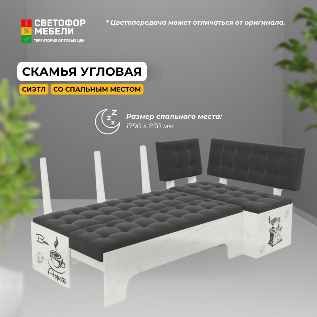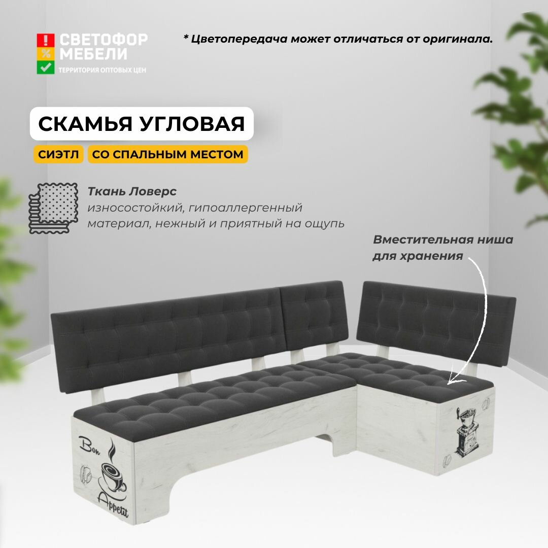 Отзывы на Диван кухонный со спальным местом Бонмебель Сиэтл 1940х820х1100, Дуб крафт белый/Серый