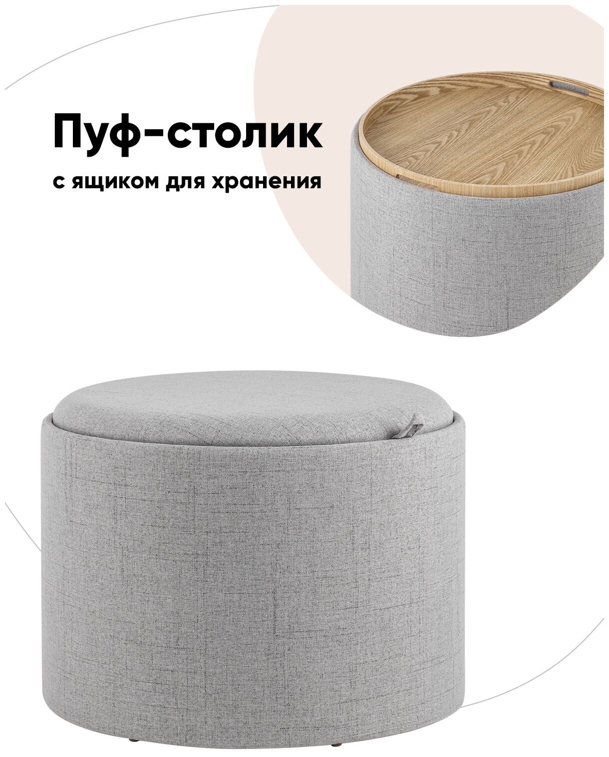 Пуф с ящиком Гуальдо L, рогожка бежевая 11 990 ₽