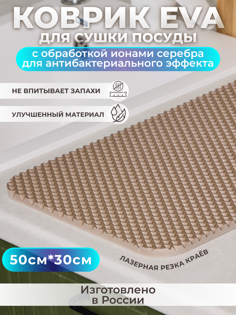 Коврик для сушки посуды, EVA, 50x30 см, бежевый 305 ₽