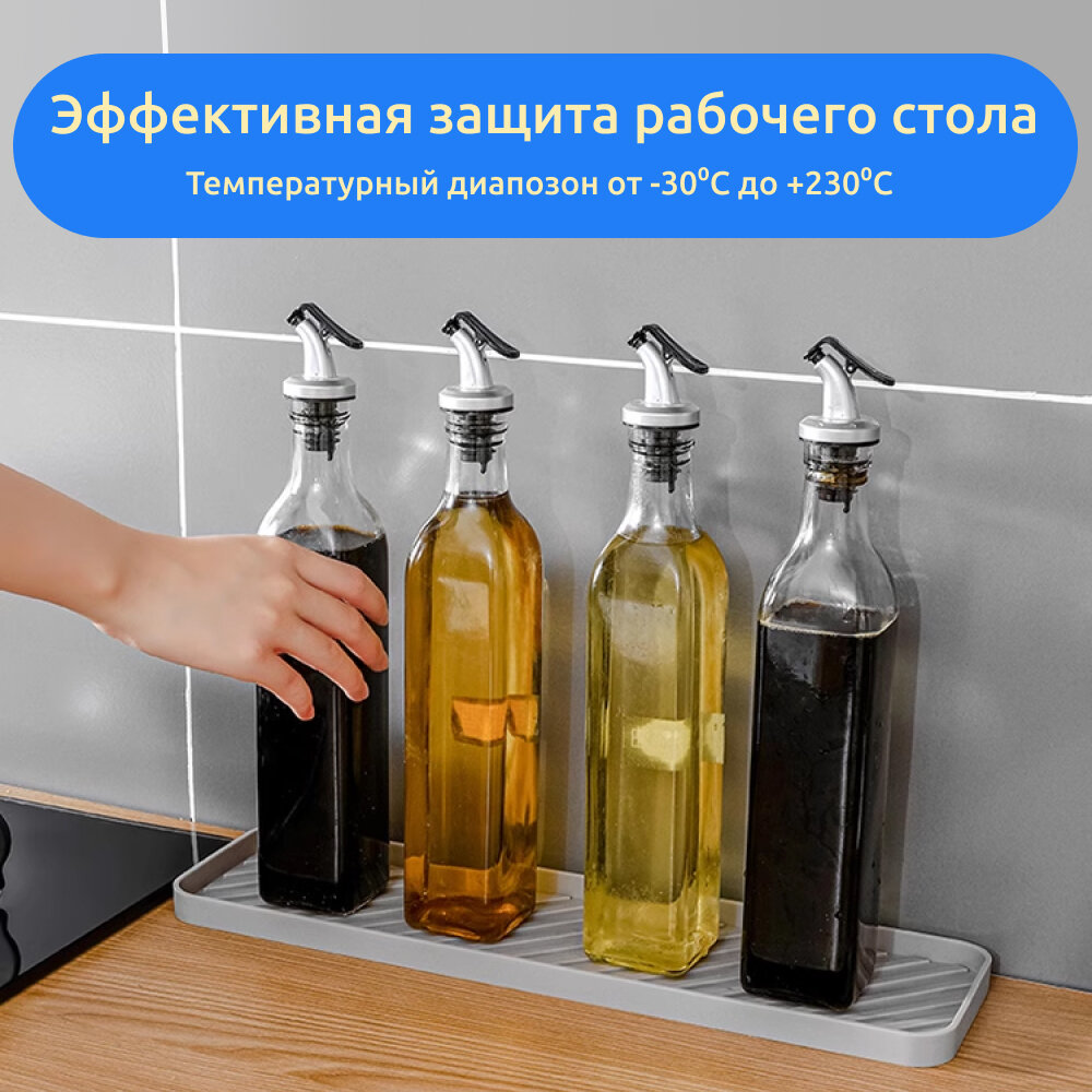 Подставка силиконовая для хранения моющего средства и губки 41,5х9х1,3 см, серая информация: