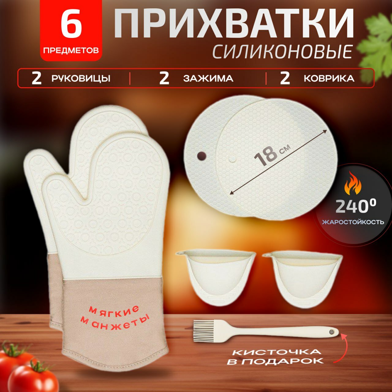 10 цен на Прихватки кухонные силиконовые набор руковицы