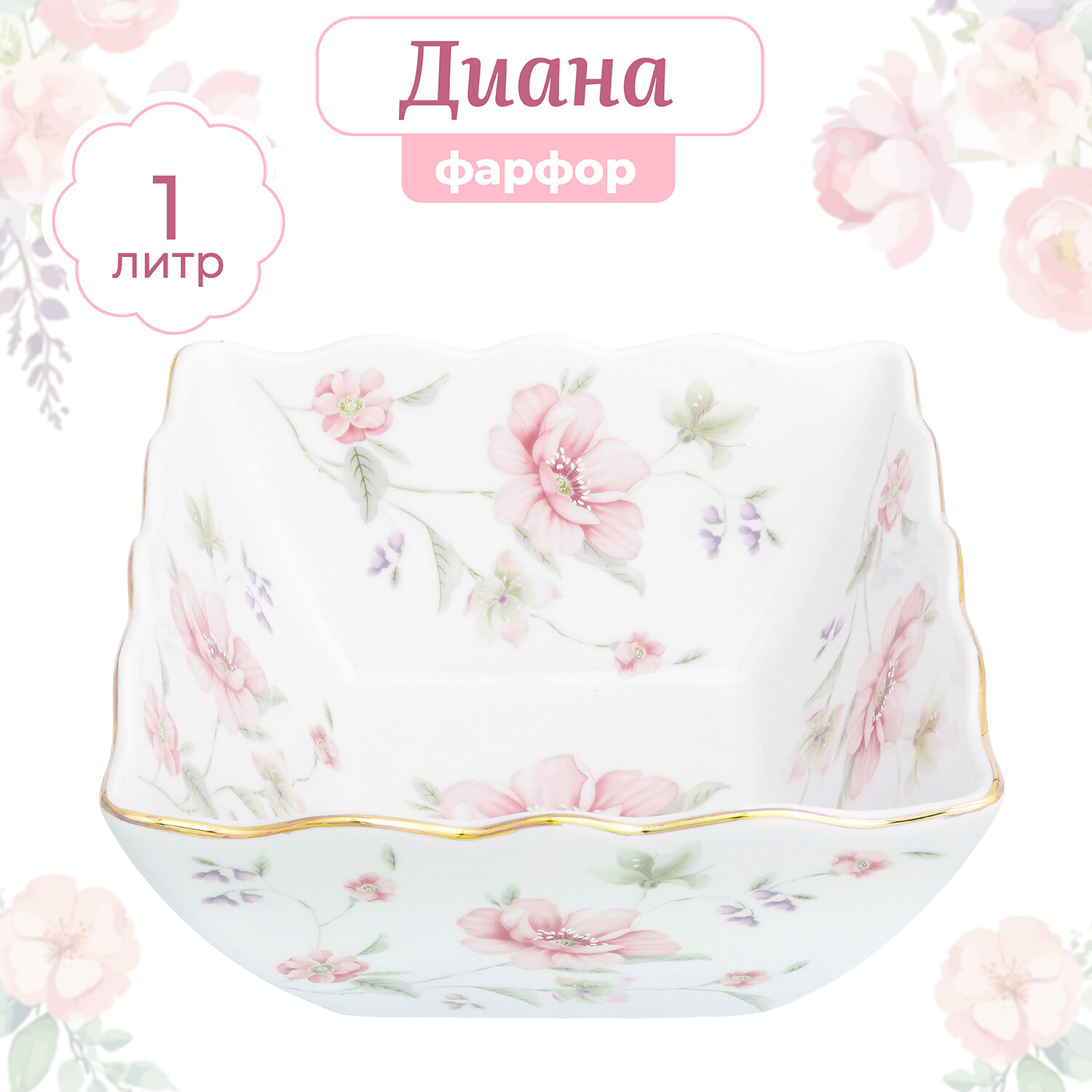 Салатник 1 л Elan Gallery "Диана", 16*15*8 см, квадратный, глубокий информация: