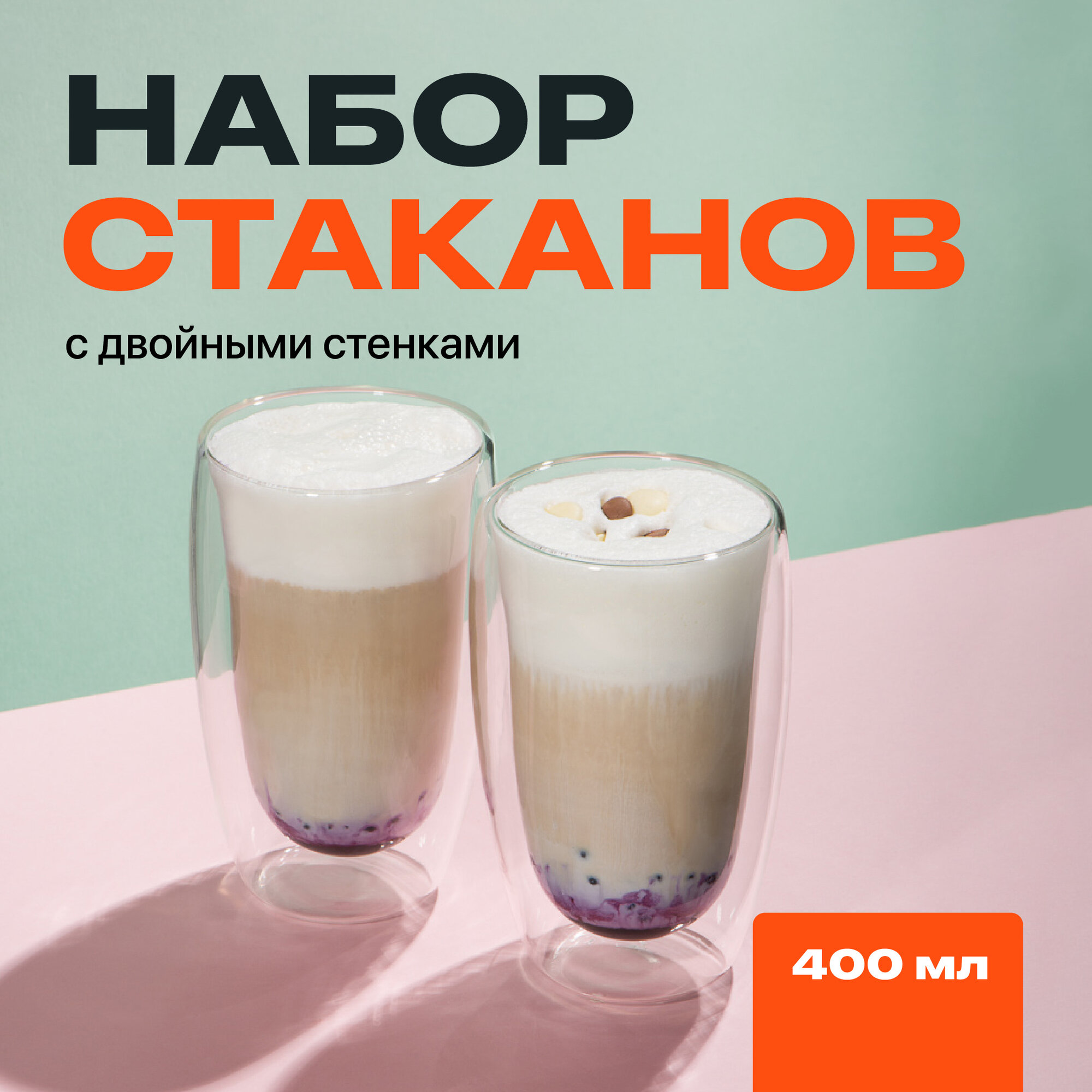 Стакан с двойными стенками Limpid Side, прозрачный, набор 2 шт, 400 мл информация: