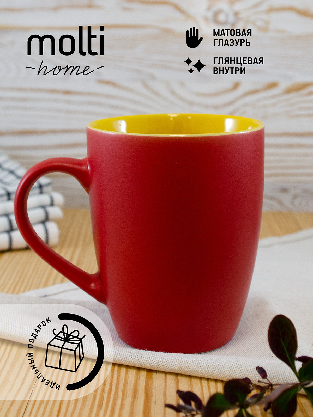 Кружка матовая для чая и кофе molti Bright Tulip двухцветная чашка подарочная 340 мл, красная с желтым информация: