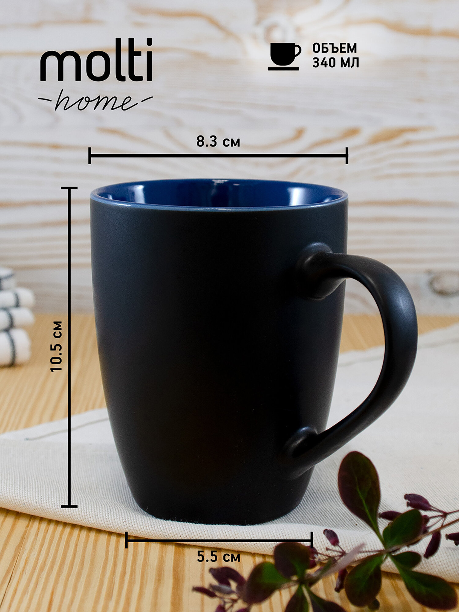 Кружка матовая для чая и кофе molti Bright Tulip двухцветная чашка подарочная 340 мл, черная с синим информация:
