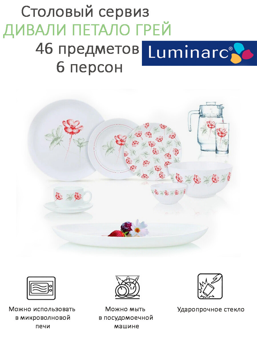Отзывы на Столовый набор Luminarc DIWALI PETALO GREY Q7821, 46 предметов