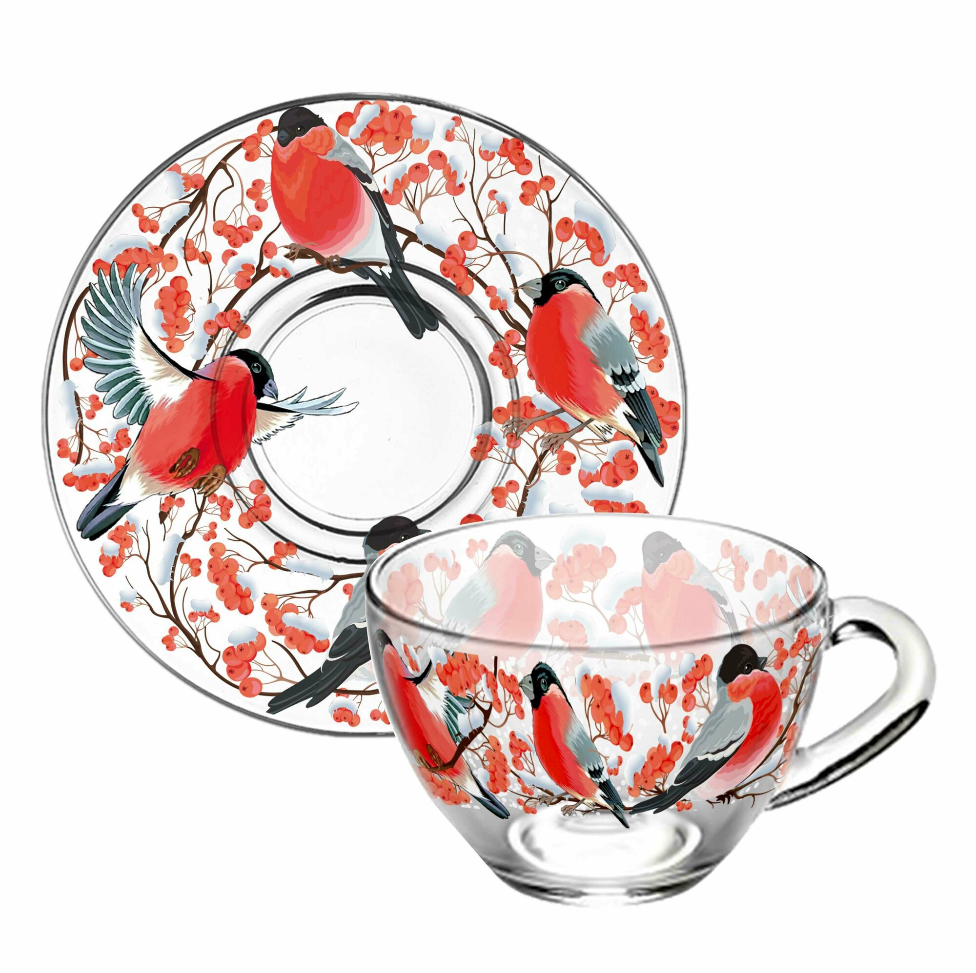 Чайная пара чашка с блюдцем "Зимние забавы" 200 мл. информация:
