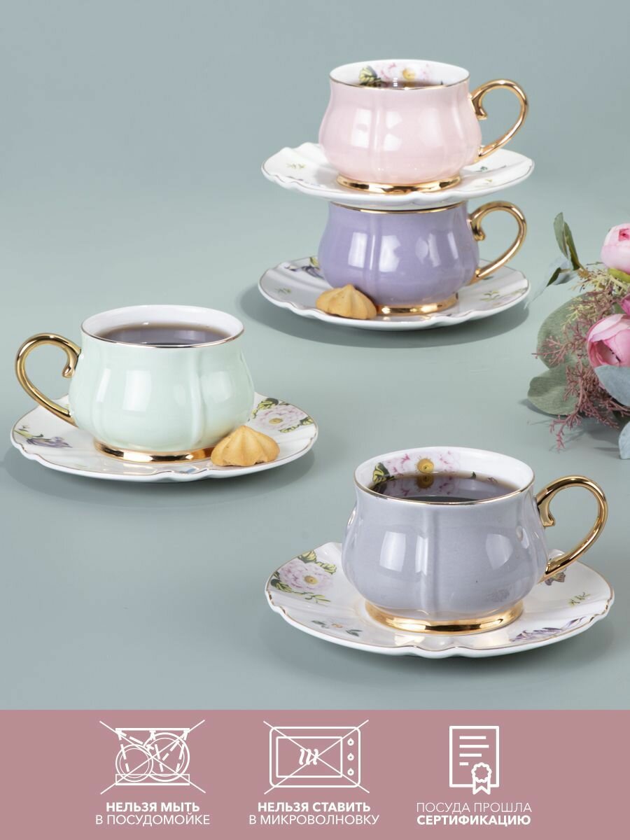 10 цен на Чайный набор Lefard "Времена Года" на 4 персоны 8 предметов : чашка 200 мл 4 шт., блюдце 4 шт.