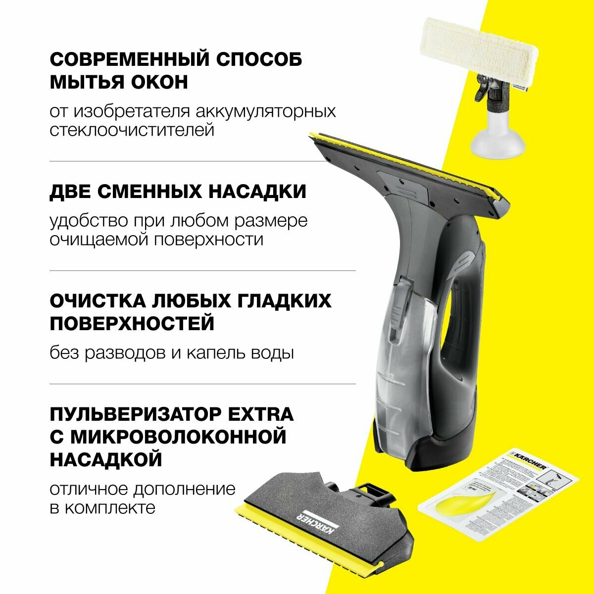 10 цен на Стеклоочиститель для окон аккумуляторный Karcher WV 5 Plus N Black Edition *EU 1.633-467.0, дополнительная узкая всасывающая насадка и пульверизатор Extra в комплекте