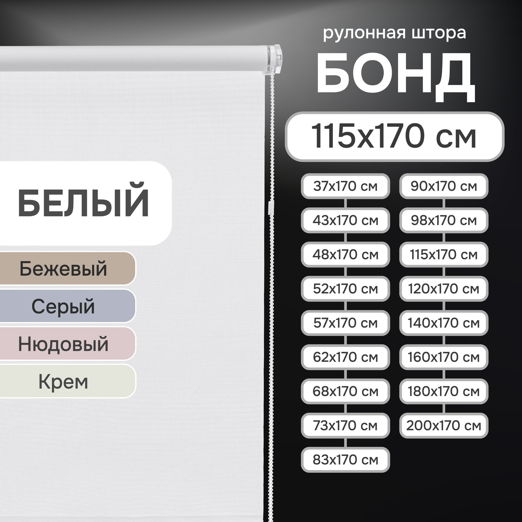 Рулонная штора Эскар Бонд, полиэстер, белый, 115х170 см информация: