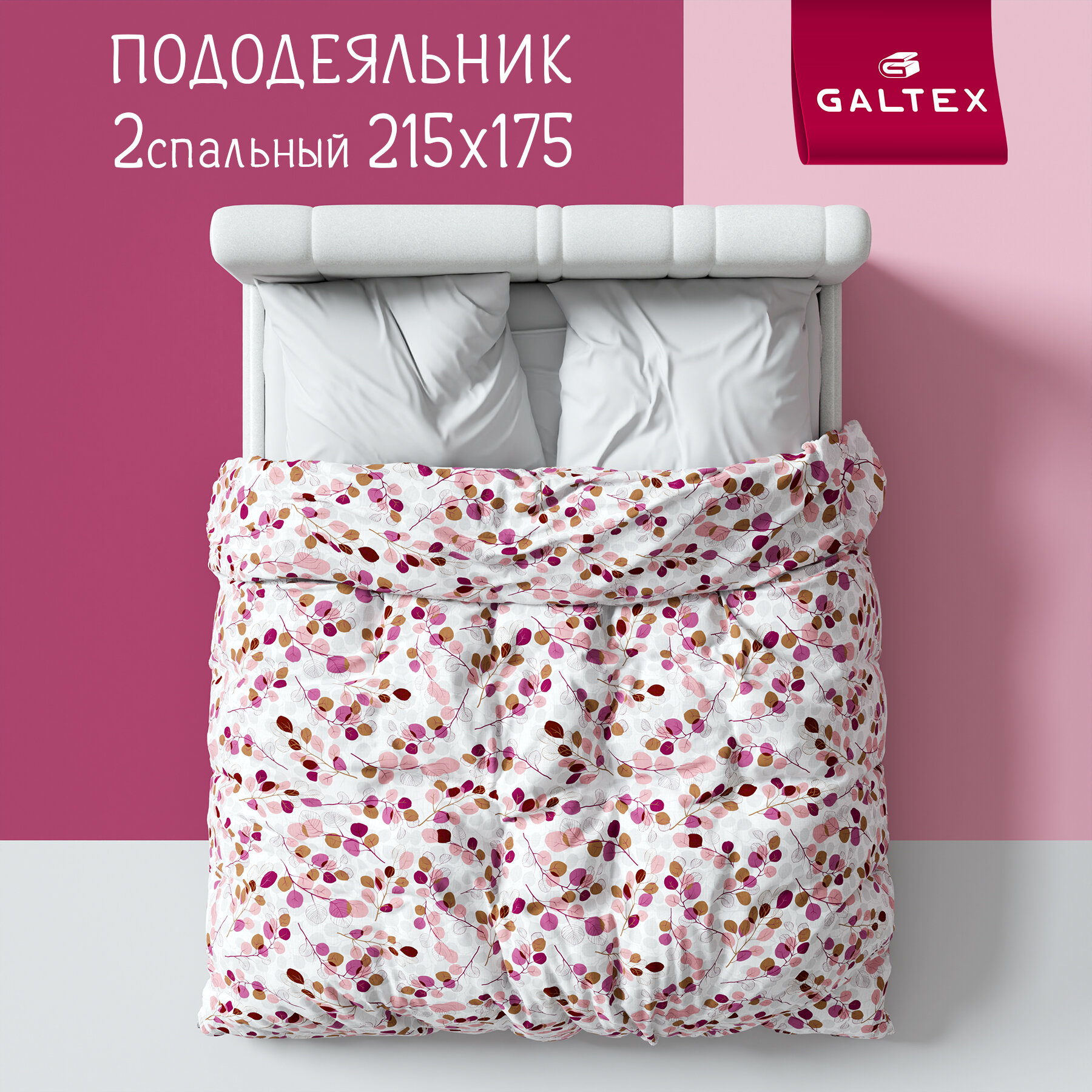 Пододеяльник 2 спальный 175х215 Galtex Эвкалипт розовый на белом фоне бязь 100% хлопок информация: