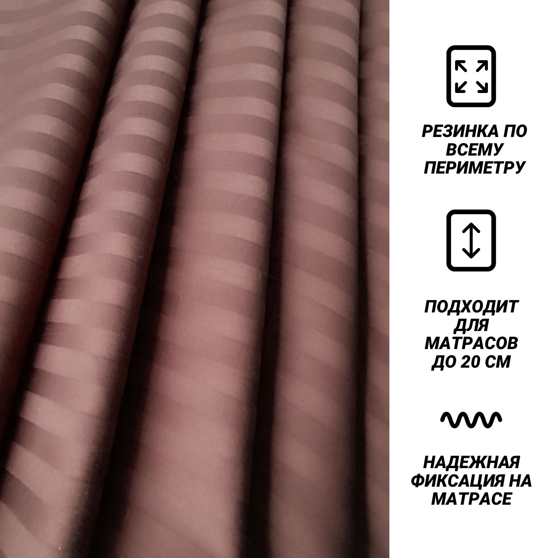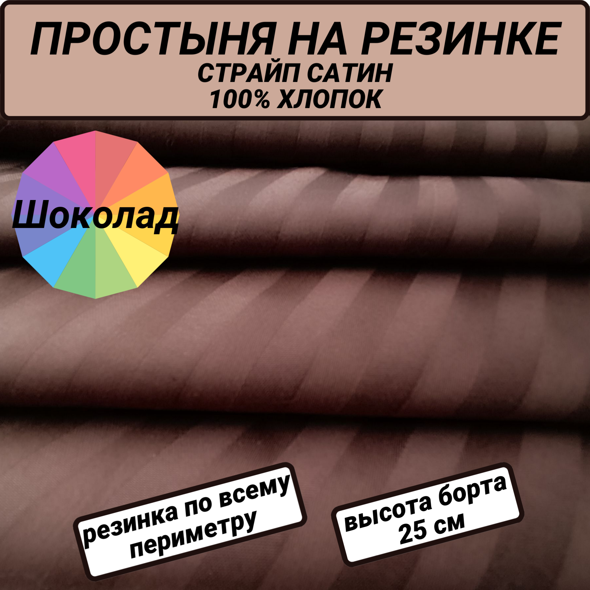 Простыня на резинке 180х200х20 страйп сатин шоколадый СПАЛЕНКА78 хлопок 100%