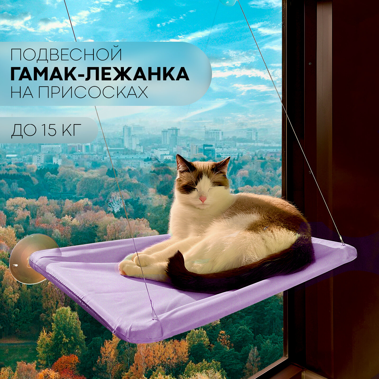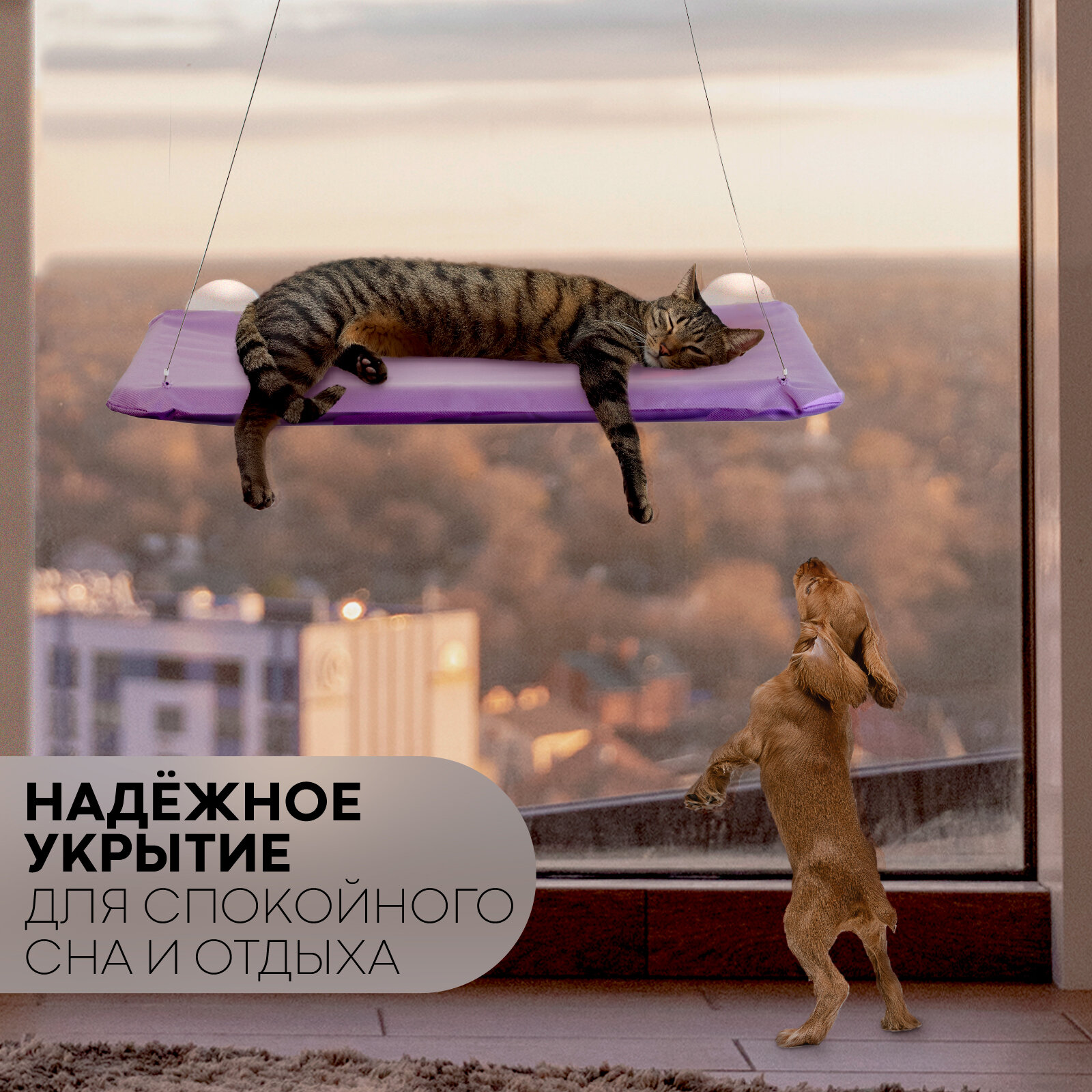 Отзывы на Навесной складной гамак полка для котов и кошек на окно, бренд Картофан, фиолетовый