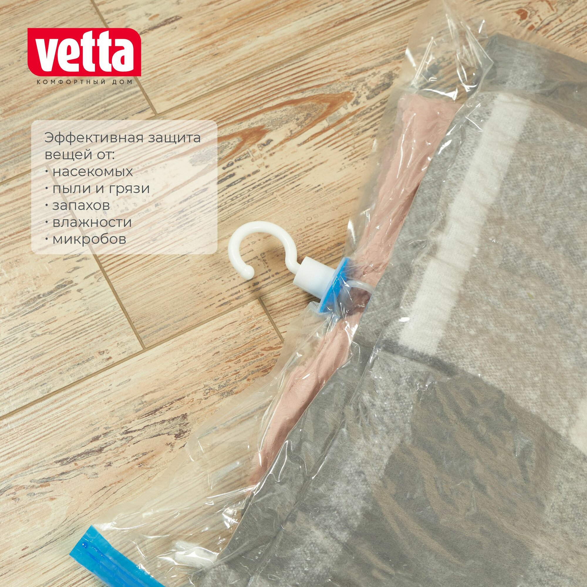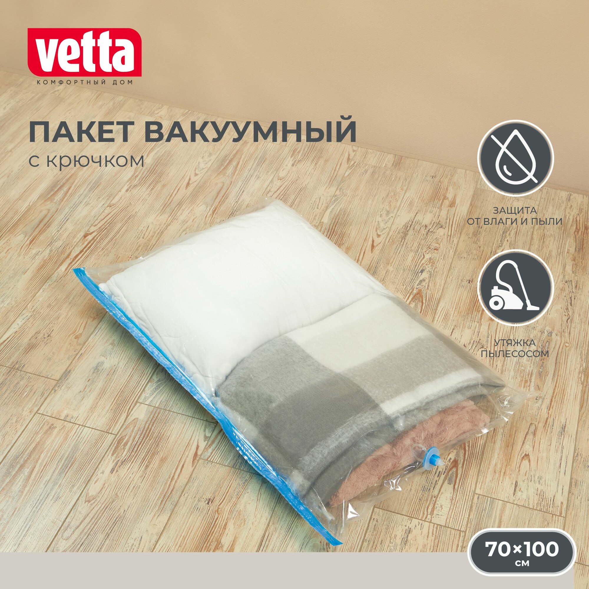 Вакуумный пакет с крючком VETTA, 70х100 см информация: