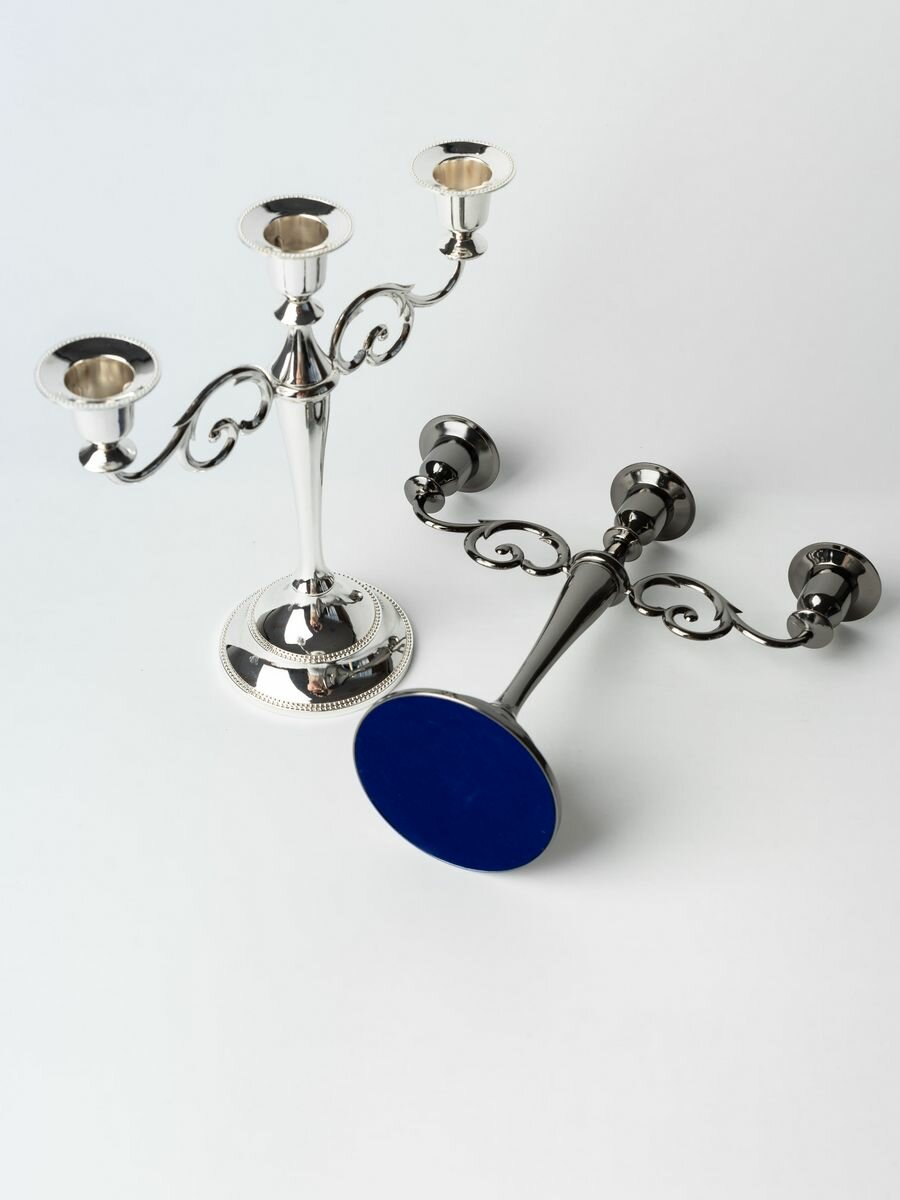 Подсвечник канделябр Пашкин Дом, для трех свечей, металлический, серебряный, винтажный 1 794 ₽