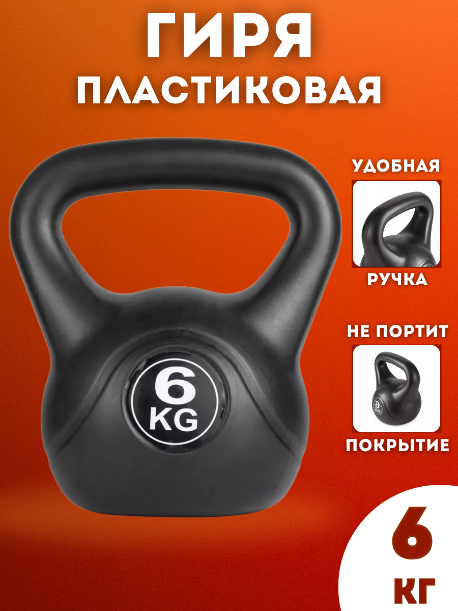 Гиря пластиковая SPORTLIM 6 кг (Черная) информация: