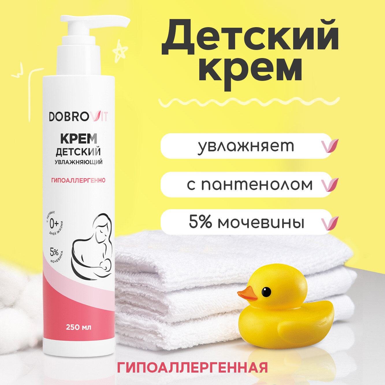 DOBROVIT Детский крем для лица и тела увлажняющий, для новорожденных, питательный, 250 мл информация:
